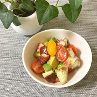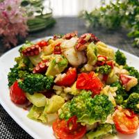 相性の良いタコ、アボカド、ミニトマトを炒めてペペロンチーノ風に仕上げました。色味も綺麗ですし、あと一品ほしいときにサッと作れる副菜です。ニンニク風味がお酒のおつまみとしても良く合います。是非、お試しくださいね。