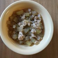 - 2 さつまいもは1cm角に切ります。5分程水にさらします。