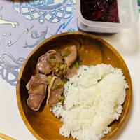 - 4 豚タンに火が通ったら(A)を入れてよく絡め、火から下ろします。