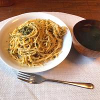 スパゲティの茹で時間は、パッケージに記載されている時間を目安にしてください。 三つ葉はパセリに代えても、全部大葉にしてもおいしいです。