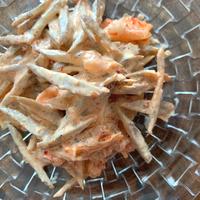 茹でたごぼうとキムチをマヨネーズで和えた簡単にできるサラダのレシピです。マヨネーズで和えることによってマイルドな味わいになります。ごはんに乗せても、お酒とのおつまみとしても合うので、是非お試しください。