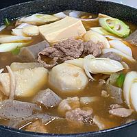 - 4 里芋に火が通ったら、2と牛こま切れ肉を入れます。牛こま切れ肉に火が通ったら、残りの調味料を入れ、中火のまま5分煮込んだら火から下ろします。