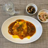 余り物でハヤシライス🍛トマトジュースを🍅1/2個で代用。お砂糖も少し入れました。美味しかったです☺️