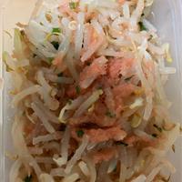 - 3 もやしをボウルに入れ、明太子とごま油、塩こしょうで調味します。