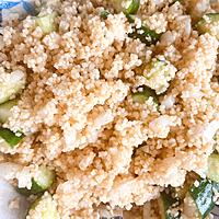 - 1 耐熱ボウルにクスクスの材料を入れ混ぜ合わせ、ラップをして5分程蒸らします。