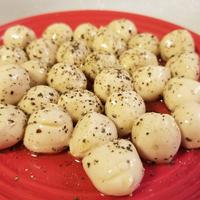 7歳娘のリクエスト‼️生モッツァレラチーズ58g、めんつゆ3倍濃縮小さじ1、EVオリーブオイル大さじ1黒胡椒なし。子供には、最高の味らしいです💓