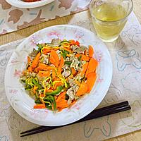 豚バラ、ピーマン、玉ねぎ、人参、木耳、椎茸で作りました🤗