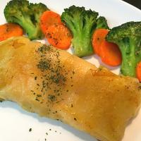 じゃがいもは、スライサーで0.5mmにペラペラにスライスして、あまりキッチンペーパーで水を切りすぎずにやってみたら、上手く包む事ができました。