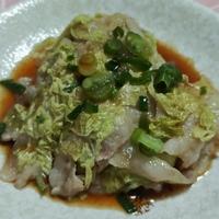 白菜ミルフィーユのご紹介です。白菜と豚バラ肉、昆布茶をミルフィーユ状に重ね、電子レンジで加熱しました。昆布茶を使うと、簡単に旨味が増し、味が調うので便利ですよ。ゆず胡椒のさわやかな辛さがアクセントになっています。是非お試しくださいね。