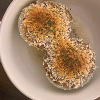 - 3 1に2を塗り、パン粉をかけます。オーブントースターでパン粉に焼き色が付くまで5分程焼きます。