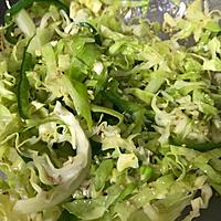 - 1 キャベツ、ピーマンは5mm幅に切ります。