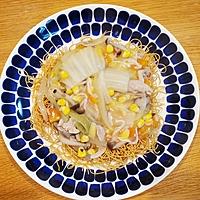 - 7 器に1玉分の揚げ麺をのせ、6の半量をかけて同様にもう1皿分盛り付け、完成です。