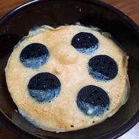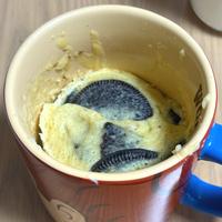 - 3 2をマグカップに入れ、ココアクッキーを適当な大きさに割り乗せラップをし、600Wのレンジで4分加熱します。