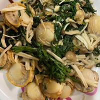 春菊とホタテのガーリックバター炒め レシピ・作り方