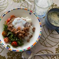 - 4 皿にごはんを盛り、レタス、3、ピザ用チーズの順に上に乗せていきます。