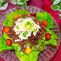 チーズは加熱を行わなくても食べられるものを使用しています。ご使用のチーズによっては加熱をしないと食べられないものもございますのでご注意下さい。お好みのひき肉で代用できます。焼肉のタレは市販のお好みの味をお使いください。