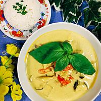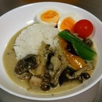 グリーンカレーペーストとココナッツミルクを使ったスパイシーなタイ風グリーンカレーです。鶏肉となす、しめじをたっぷりと入れました。簡単ですのでぜひ作ってみてくださいね。グリーンカレーペーストは炒め物などにも使えて便利ですよ。