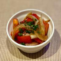パプリカと新玉ねぎの甘みとジューシーな食感が楽しめる、さっぱりとした一品です。ポン酢の爽やかな酸味が野菜の自然な甘みを引き立て、ぽりぽりとした食感も心地よく、お箸が進みます。調理方法がシンプルで手軽なため、パプリカが余ったときのサブおかずとしても重宝します。お弁当の彩りにもぴったりで、ズッキーニを加えてアレンジするのもおすすめです。