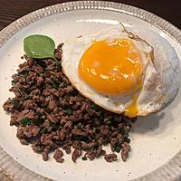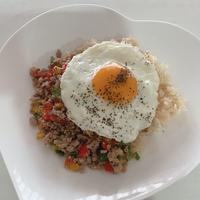 お家でスパイシーなタイ料理が楽しめます。 流行りのタイ料理は材料を揃えたりするのが大変ですが、身近にある物で出来るガパオライスです。 ナンプラーがない場合は風味は欠けますが、おしょうゆでも代用できます。