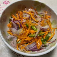 分量より少し多め目(野菜70g)で作りました。爽やかな味で夏に最適。美味しいです。ただ、人参の硬さが口に残るので、レンジでチンすればよかったかなと思います。