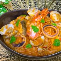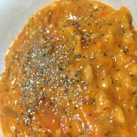 トマト煮込みのブイヤベースの汁にご飯入れて、塩コショウして、トロミが付くまで煮ただけ◎