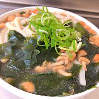 ワカメを追加してみました!冷凍うどんを入れるタイミングで、一緒に乾燥わかめも投入しました。わかめとなめこと肉のおかげでかなりのボリュームになりました笑 美味しかったです!