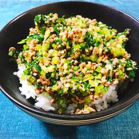 かぶの葉とひき肉のうま丼 レシピ・作り方