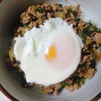 かぶの葉のシャキシャキとした食感が魅力の丼物です。豚ひき肉や鶏ひき肉を使って手軽に作れ、生姜の爽やかな香りと味噌のコクが食欲をそそります。仕上げに温泉卵を乗せると、とろっとした黄身がからまって更に美味しさアップ。ご飯がモリモリ進む味付けで、作り置きにも向いているため、お弁当のおかずとしても重宝します。コチュジャンや豆板醤を加えてピリ辛アレンジも楽しめます。