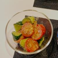 トマトときゅうりにすりごま…どんな味になるんだろうと少し心配しながら作りましたが、意外にさっぱり美味しくできました!!