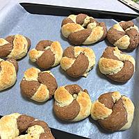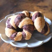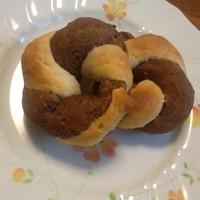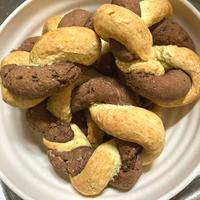 プレーンとココア生地を分けず一緒に作り味付けで分けた。生地がまとまらず牛乳小さじ1.5くらいを追加。扱いづらい生地。焼き時間15分だと固くなる。