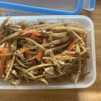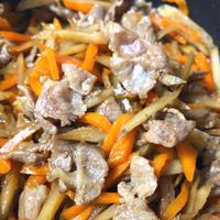 いつものきんぴらに豚ロース肉が入るとこんなに美味しくなるなんて!脂っ気がとてもいい!