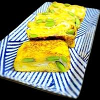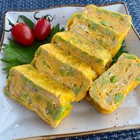 枝豆としらすの卵焼きはいかがでしょうか。枝豆の緑色とたまごの黄色が鮮やかで、枝豆の甘味としらすの旨味を感じる一品です。おかずとしてはもちろん、お酒のおつまみにもおすすめです。ぜひお試しくださいね。
