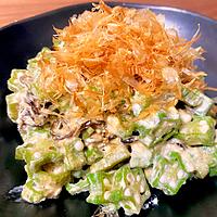意外な組み合わせ!醤油と塩昆布の塩味がチーズと相性◎鰹節も合う~!チーズ感が強すぎることもないので、オクラの味もしっかり楽しめて美味しかったです♡