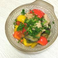 おろしめんつゆで味付け簡単。めんつゆが4倍濃縮だったので大根おろしたっぷりで。パプリカのカラフルな色がなかったのでかわりに人参を入れました。家族に好評でした。