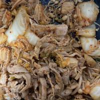 こくうまキムチを使用。ヘルシーなエノキでボリュームアップ。ご飯がススムしっかりした味付けでとても美味しかったです。2〜3日、冷蔵保存できるのもポイント高いです!