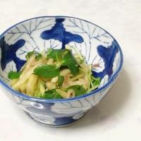 細切りにした大根と三つ葉を、梅干しをきかせた調味料で和えました。ポン酢、ごま油、かつお節で味付けしているので、さっぱりとしておつまみなど箸休めにぴったりです。ちょっと三つ葉が残っていたら、ぜひ作ってみてくださいね。