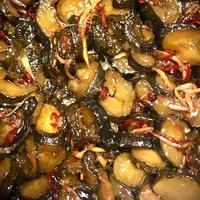 鷹の爪がなかったので七味で。胡瓜の佃煮、いろんなレシピで作ってきましたがこちらが断トツ簡単で好みの味でした。我が家のリピ決定。