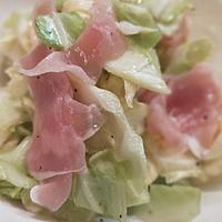 キャベツが硬かったので熱湯をかけました。生ハムの塩味が美味しかったです。
