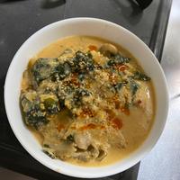 鶏ガラスープ小さじ2, 味噌大さじ1, コチュカル(一味唐辛子)大さじ1を追加しました!写真はあまり美味しそうに見えませんが、めちゃくちゃ美味しかったです!笑