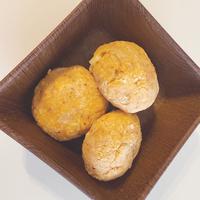 - 4 3をよく混ぜ等分にし、2を包んで丸め、アルミホイルを敷いた天板にのせます。オーブントースターで3分程度、軽く焦げ目がつく程度に焼きます。