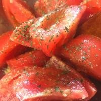 和えるだけで簡単、トマトサラダのレシピのご紹介です。さっとお作りいただけますので、あともう一品欲しいときにもぴったりですよ。ハーブソルトや黒こしょうの風味が効いていて、とってもおいしいです。ぜひお試しくださいね!