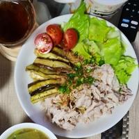 少し冷しゃぶやナスから出た水で薄まってしまったのか、レシピどおりのタレは薄く、追加でめんつゆをかけました。