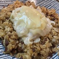 - 4 3に牛ひき肉を加え炒めたら、ごはんを入れ(A)を加え、全体に馴染むまで混ぜたら一旦火から下ろします。