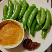 今晩のおかずに、スナップえんどうとごまマヨネーズディップソースはいかがでしょうか。甘みがあり、シャキシャキとした食感のスナップえんどうに、コクのあるごまマヨネーズのディップソースをつけると、とても美味しいですよ。