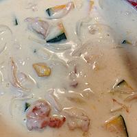 シチュールーがなかったので、400mlの豆乳に大さじ3の小麦粉と塩少々を混ぜて、入れました。美味しく食べられました!