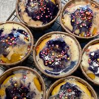 - 7 4のカップケーキの粗熱が取れたら、6を乗せ、お好みで飾り付けをして完成です。