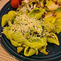 小松菜を使用したパスタです。ソースはすこし濃いめのほうが美味しいです。パスタは1.6mmを使用しましたが、細めのカッペリーニを使って冷製パスタにしても美味しく食べられます。ピリッとアクセントが欲しい方は黒胡椒を振って下さい。