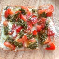 簡単ピザ風 トマトとチーズのジェノベーゼ レシピ・作り方
