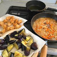 工夫した点は鍋の洗い物を一つでも減らしたくて、鶏むね肉とナスを揚げたフライパンをキッチンペーパーで油を取り、調味料と野菜を入れて作りましたが油ぽくなることもなかったです。