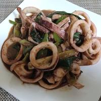 - 1 イカの胴体は2cm幅の輪切り、ゲソは一口大に切ります。